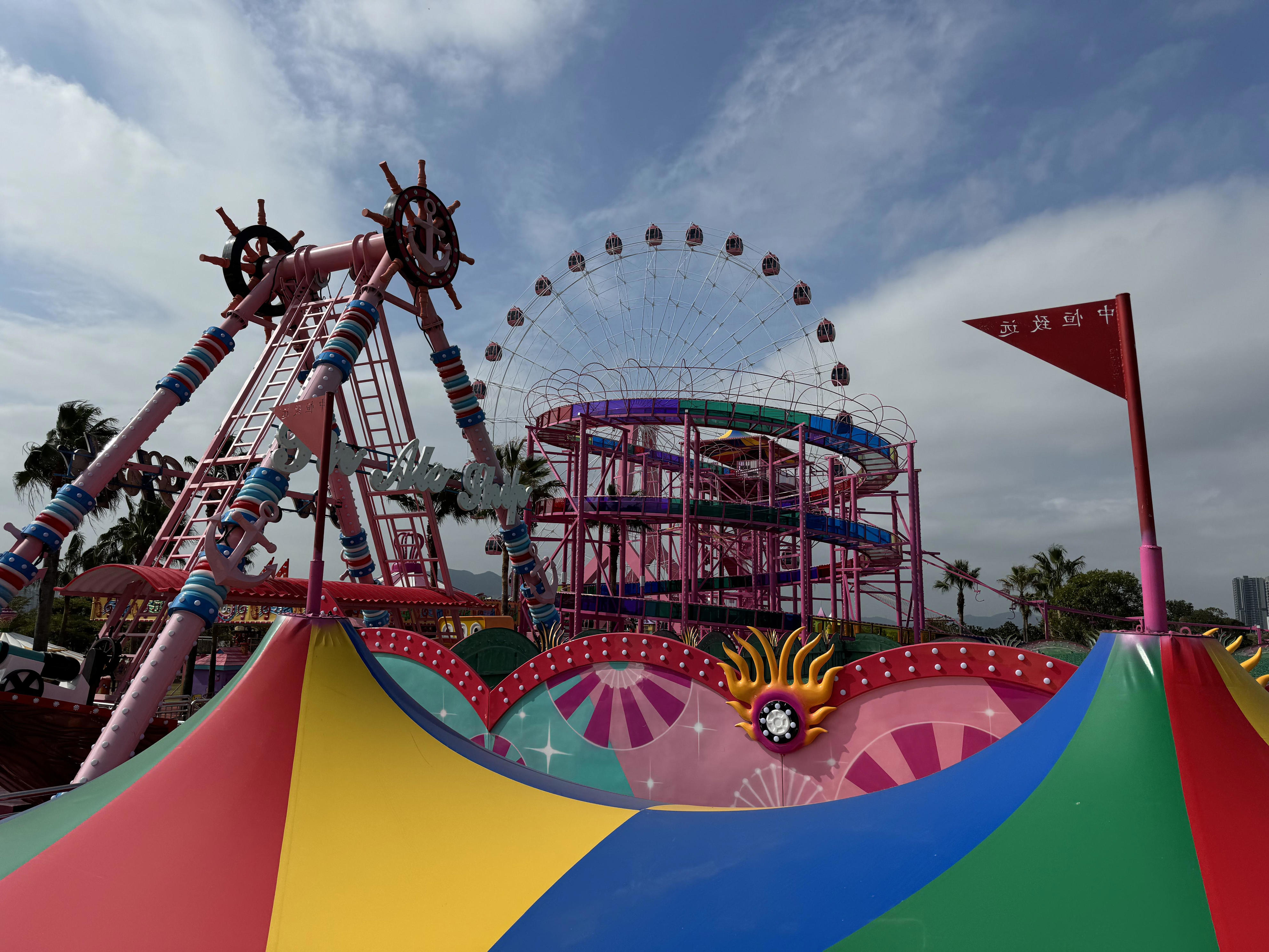 走进金湖欢乐世界,一片粉色系列的游乐设施让人心动不已。12个动力设施以及1个无动力设施,涵盖了新奇、欢乐、温馨等多种体验。其中,48米高的带空调摩天轮成为乐园的标志性项目,乘坐它游客们可以在高空尽享金湾的美景。珠海首个玻璃水滑道项目可以让游客通过水上滑行解锁刺激新体验。海盗船、摇头飞椅等经典项目也将让游客感受到波涛汹涌的刺激和空中飞人的自由旋转。此外,园内还有碰碰车、豪华转马、激战鲨鱼岛、迪斯科转盘、魔幻镜宫、旋转塔、太空漫步以及无动力乐园等丰富多样的游乐设施,可以满足不同年龄段游客的需求。